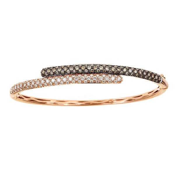 This brown diamond bangle is available in gold. The centerstone may be special-ordered in any precious gemstone color. The brown diamond in this bangle has a total carat weight of 0.90 carats. The diamonds have a total carat weight of 0.90 carats.