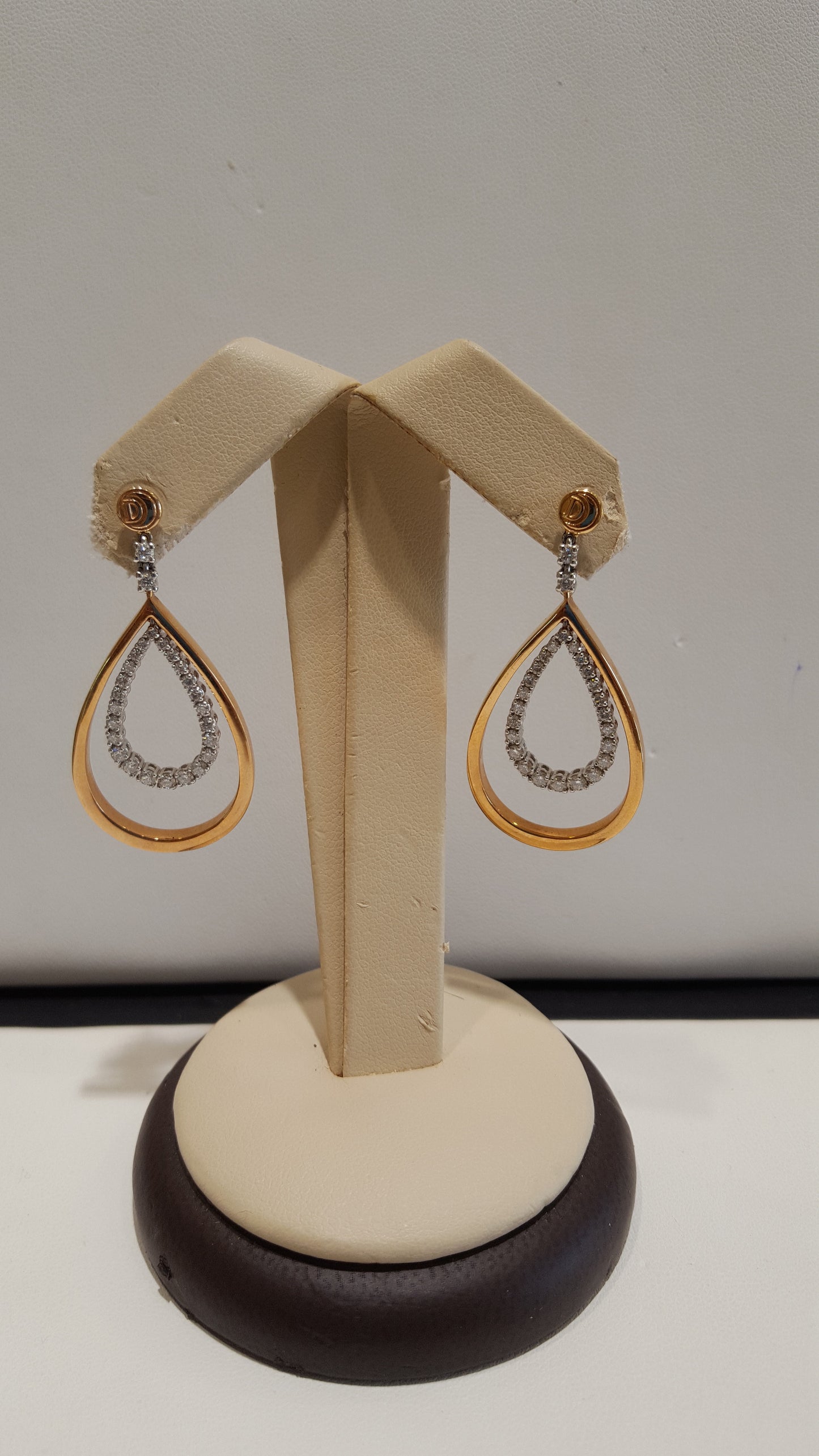 These earrings are available in gold. The diamonds have a total carat weight of 1.08 carats.