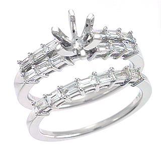 6-Prong Peg W/ Prong-Set Baguette Diamond Bridal Set In 14K White Gold