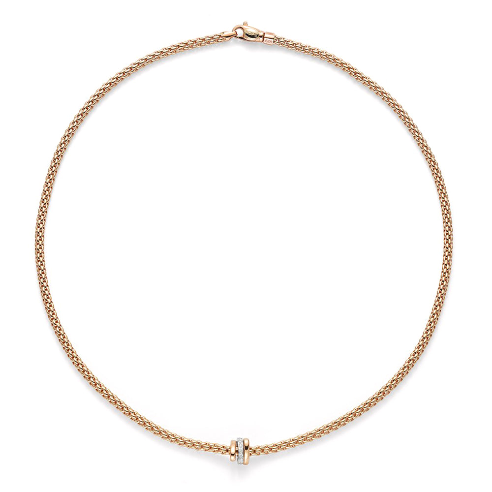Fope Prima 18ct Rose Gold Necklet With One Diamond Set And Two Plain Rondels