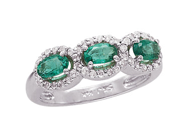 This emerald and diamond ring is available in gold. The centerstone may be special-ordered in any precious gemstone color. The oval emerald in this ring have a total carat weight of 0.66 carats. The diamonds have a total carat weight of 0.21 carats.