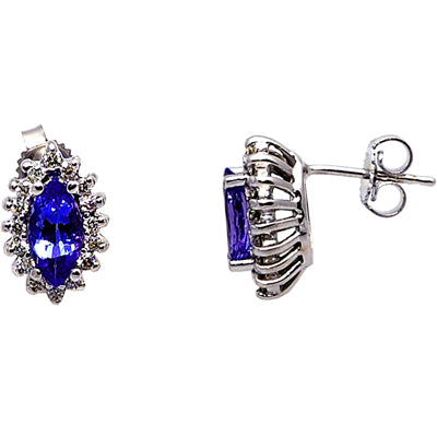 This tanzanite and diamond earring is available in gold. The centerstone may be special-ordered in any precious gemstone color. The marquise tanzanite in these earrings have a total carat weight of 1.18 carats. The diamonds have a total carat weight of 0.32 carats.
