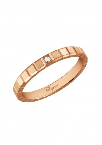 Fashioned from gleaming 18k rose gold, this Ice Cube ring's unique geometric design features a round brilliant-cut diamond for a hint of understated sparkle. Contemporary elegance meets timeless appeal.