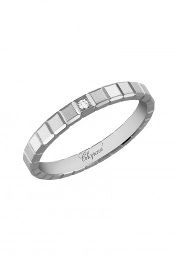 Fashioned from gleaming 18k white gold, this Ice Cube ring's unique geometric design features a round brilliant-cut diamond for a hint of understated sparkle. Contemporary elegance meets timeless appeal.