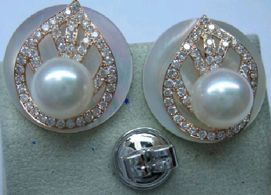 South Sea Pearl W/ MOP & Diamonds Earrings In 14K Two Tone Rose Gold